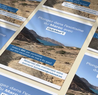 Avec le Club Med, des affiches de promotion du tourisme au Maroc ont été créées en utilisant mes propres photos. Cette expérience enrichissante a combiné ma passion pour la photographie et mon expertise en design d’affiches.
